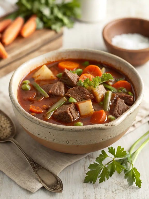 After all that simmering, it’s time for the best part: serving up this comforting meal. We always say that a great bowl of vegetable beef soup is a complete meal in itself, but a few simple additions can turn it into a truly special dinner. For a cozy night in, we love pairing it with a thick slice of crusty, buttered bread or a handful of buttery crackers for dipping. The bread is perfect for soaking up every last drop of that savory broth. If you’re looking for something a bit heartier, a simple side salad with a bright vinaigrette offers a lovely contrast to the rich soup. During our team tastings, we found that a sprinkle of extra fresh parsley or a little grated Parmesan cheese right at the table lets everyone customize their bowl. And don’t forget a warm, cozy beverage—a glass of iced tea or even a simple sparkling water with lemon feels just right alongside this easy vegetable soup. One of our favorite reader tips is to set up a “soup bar” for casual gatherings. Leave the pot on the stove, set out the toppings and bread, and let everyone serve themselves. It’s a wonderfully relaxed way to share this classic beef stew with friends and family.Mistakes to Avoid