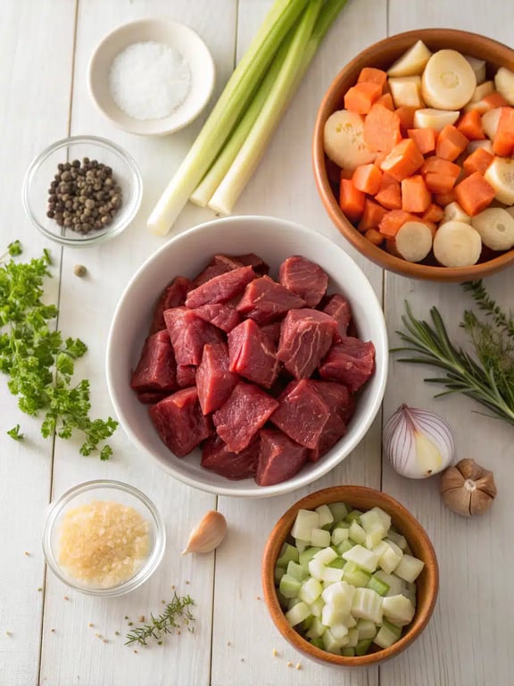 Here’s everything you’ll need to make this comforting vegetable beef soup. We love how these simple, wholesome ingredients come together to create a meal that feels both nourishing and indulgent.- 1 ½ pounds beef chuck roast, cut into ½-inch cubes