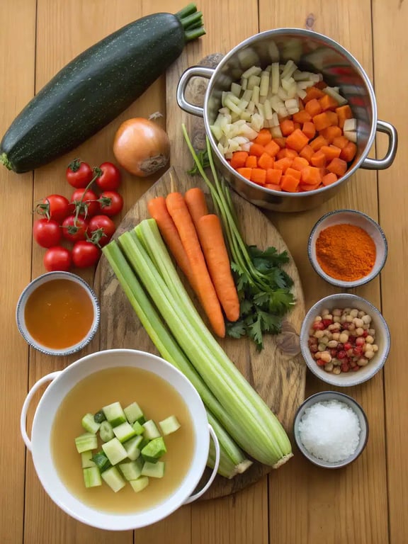 A deeply satisfying and nourishing bowl of comfort featuring a savory broth packed with tender carrots, celery, zucchini, and sweet corn, all simmered together with aromatic garlic and thyme. This hearty vegetable soup feels both wholesome and incredibly flavorful, perfect for any day of the week.
