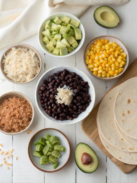 Gathering the right vegetarian burrito ingredients is the first step to a fantastic meal. Fortunately, this list is simple and relies on pantry staples and fresh favorites. Here is everything you’ll need to create these flavorful bundles.- 1 1/2 cups cooked brown rice